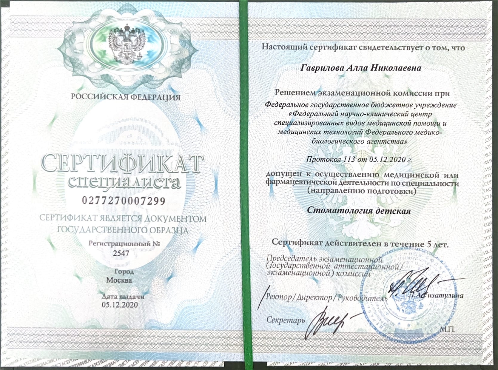 - Ставропольский государственный медицинский институт повышения квалификации КарьераМедиФарм. «Детская стоматология», 2016 г.