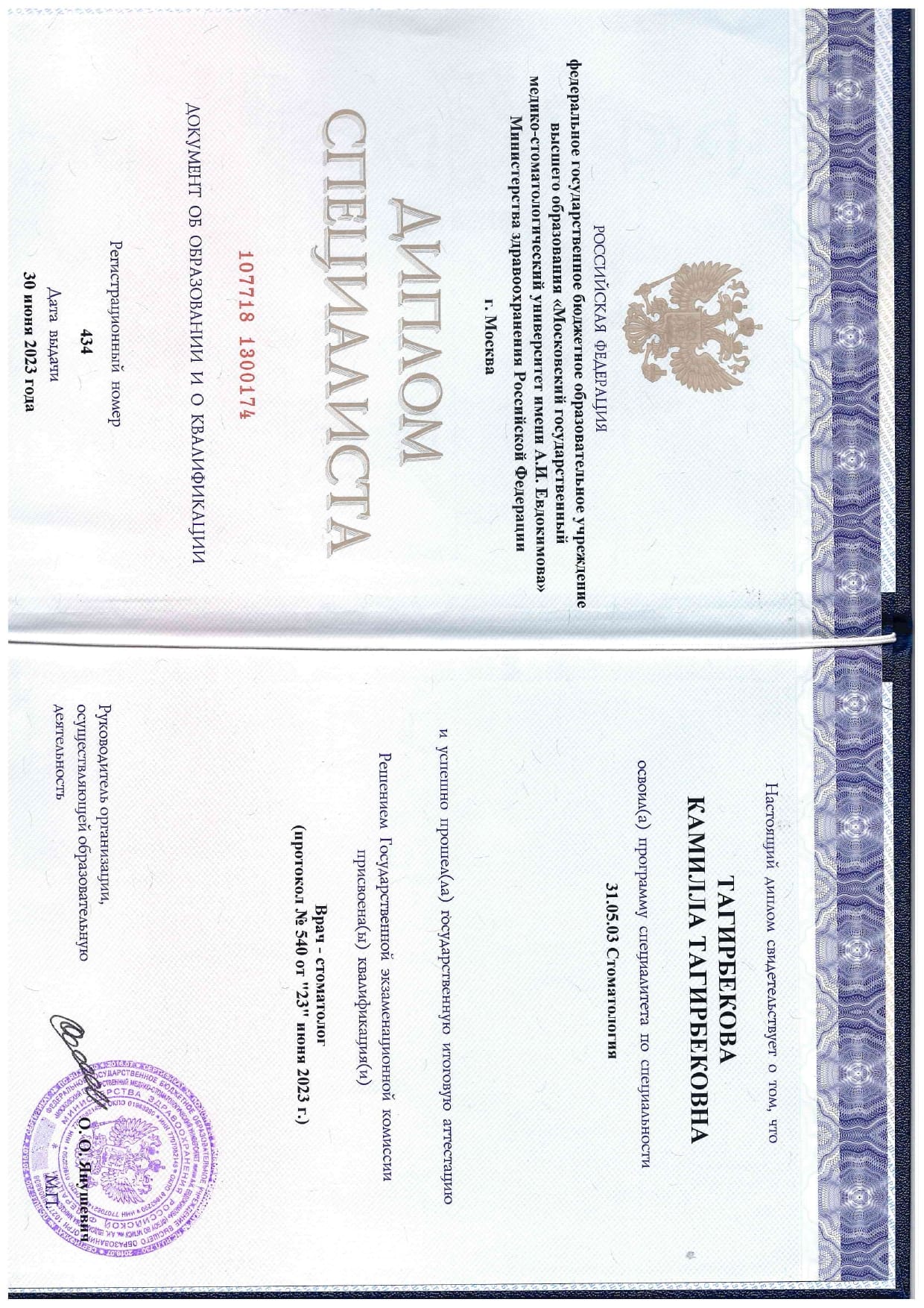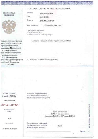 - Московский государственный медико-стоматологический университет (Российский университет медицины) / Стоматология, 2023 г.