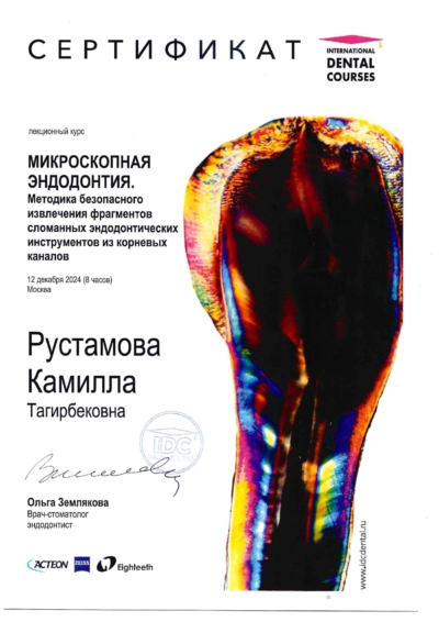 - IDC. Микроскопная эндодонтия. Методика безопасного извлечения фрагментов сломанных эндодонтических инструментов из корневых каналов, 2024 г.